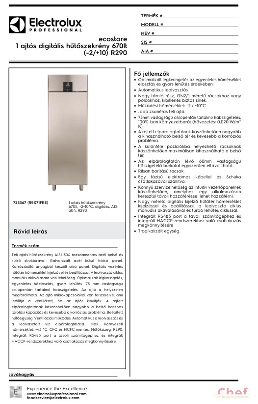 Modell típus: álló hűtő