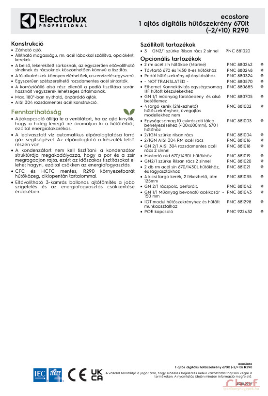 (Szállított) rácsok száma és típusa: 3 - GN 2/1