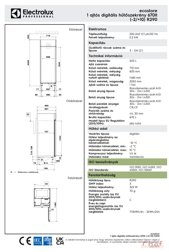 Bruttó kapacitás: 670 L
