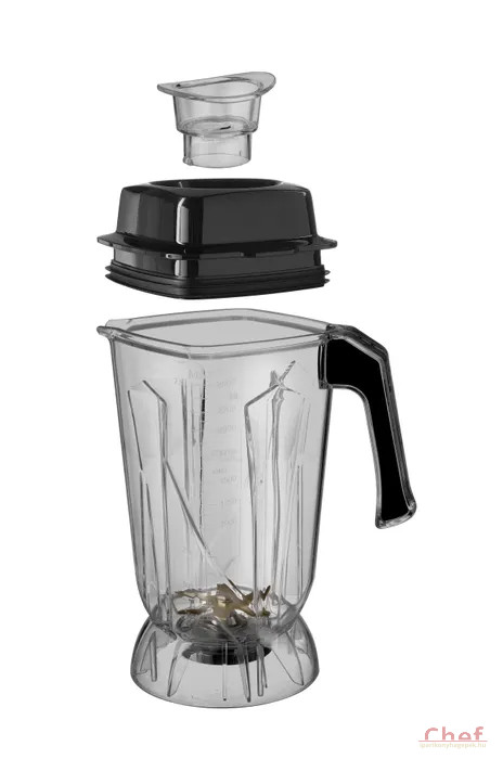2,5 literes törésálló polikarbonát kancsóval, PBT-ből készült, és egy kis polikarbonát fedőfedéllel.